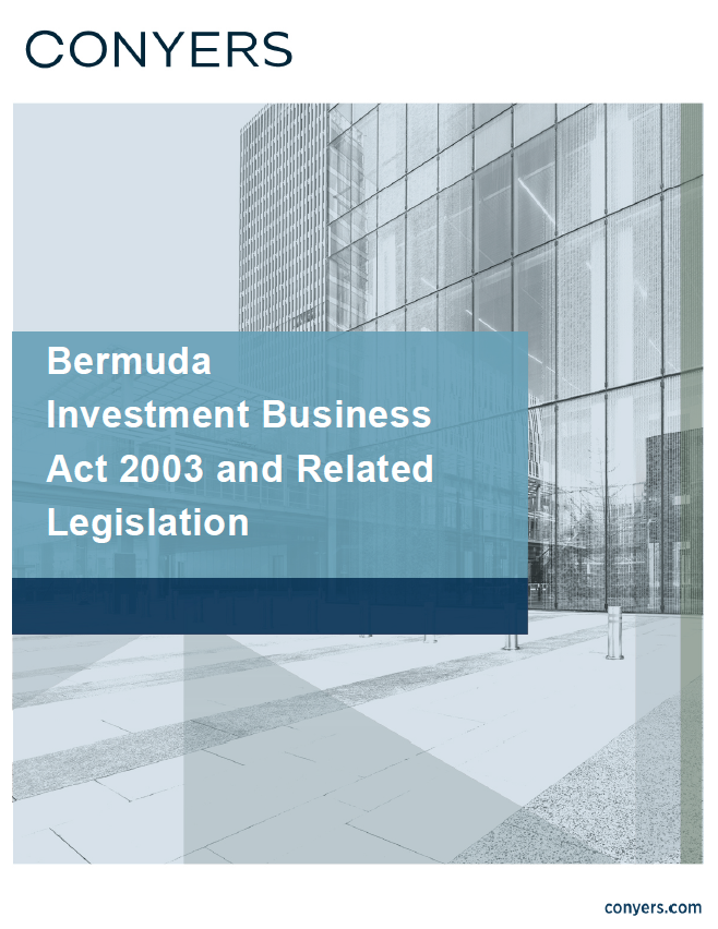 This publication does not, however, contain the various forms and filings prescribed by the Act, nor have we included the Investment Business Appeals Tribunal Regulations 2004. These are available upon request to Conyers Dill & Pearman.
